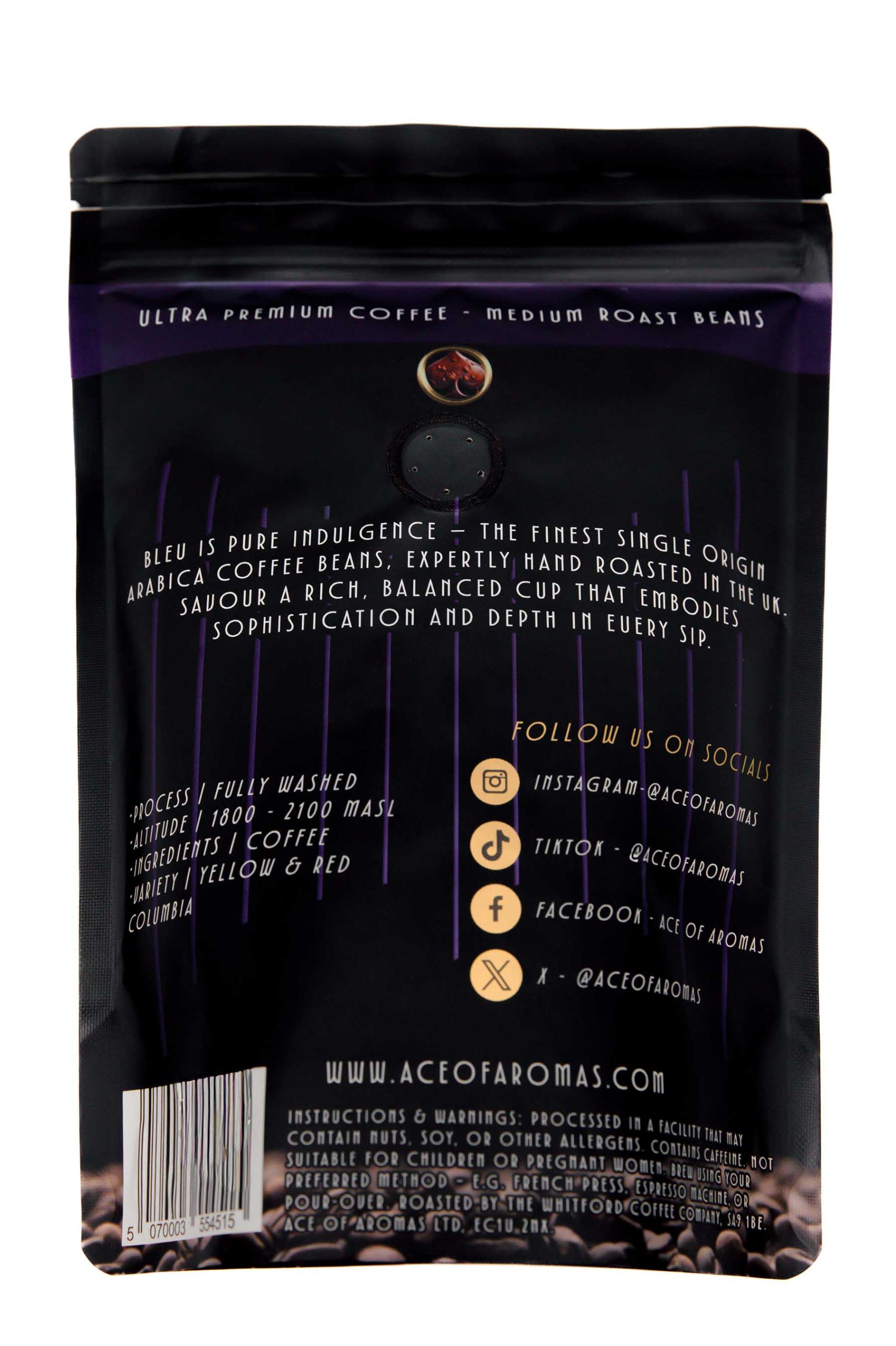 “Crafted from high-altitude Colombian beans and hand-roasted in Wales, Bleu delivers a smooth, sophisticated cup defined by natural sweetness, rich depth, and effortless elegance.”